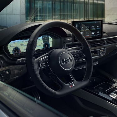 Operate the infotainment in the Audi S5 Coupé² intuitively using the 10.1-inch MMI touch display or natural language interaction⁵, for example with the optional MMI navigation plus with MMI touch. The optional Audi virtual cockpit plus brings the information most important to the driver into view on its clearly structured 12.3-inch full HD display, with custom operation, intuitive menu navigation and driver-oriented display. The S-specific design puts the vehicle’s rev counter centre stage.