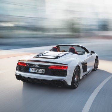 The naturally aspirated V10 engine of the Audi R8 Spyder V10 performance quattro generates 610 hp. For a top speed of up to 329 km/h and performance with an intensity that only a very few get to experience.